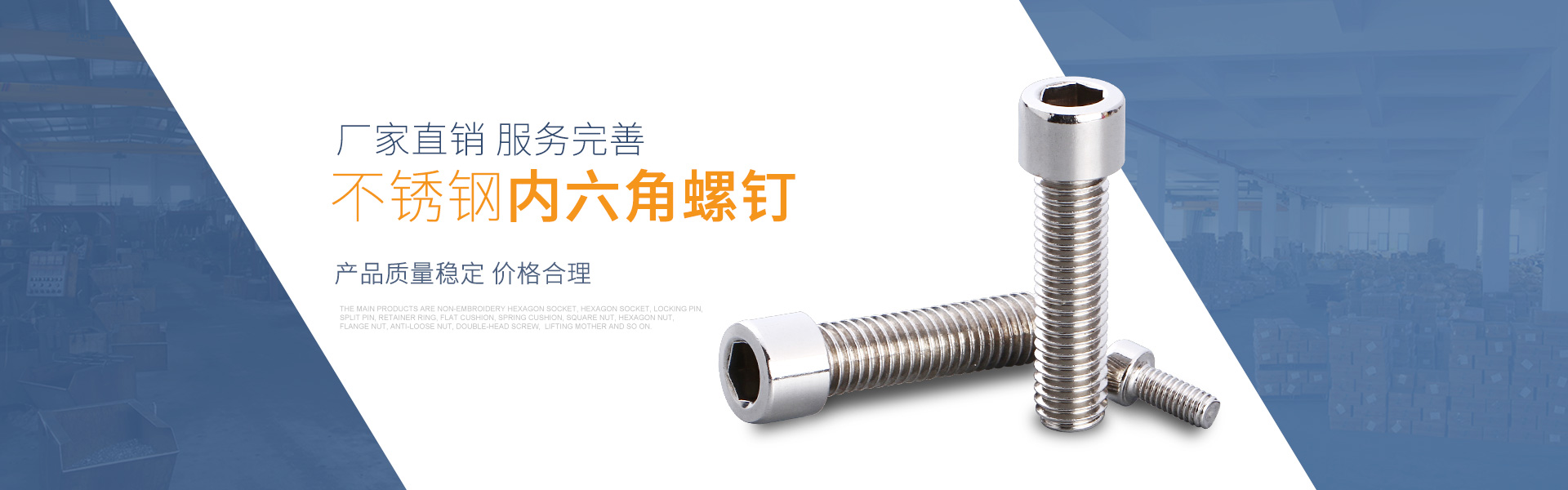 溫州博力浩實(shí)業(yè)有限公司創(chuàng)建于2006年,廠(chǎng)房面積30000m2,現(xiàn)有員工300多名,還引進(jìn)各種國(guó)際先進(jìn)螺母冷鍛機(jī),螺絲冷鍛機(jī)及檢測(cè)設(shè)備,形成一條龍服務(wù)。產(chǎn)品質(zhì)量穩(wěn)定可靠,年產(chǎn)量近10000噸,產(chǎn)品供應(yīng)國(guó)內(nèi)各大企業(yè)廠(chǎng)家,深受好評(píng)。主要產(chǎn)品有不繡鋼內(nèi)六角、外六角、緊定、開(kāi)口銷(xiāo)、擋圈、平墊、彈墊、方母、六角螺母、法蘭螺母、防松螺母、雙頭螺絲、碟型螺母、蓋型螺母、牙條平鍵條、圓柱條、內(nèi)齒、外齒......